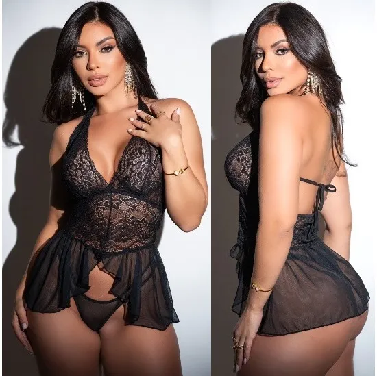 Combinando renda delicada e tule transparente, essa camisola preta é puro charme e sedução.