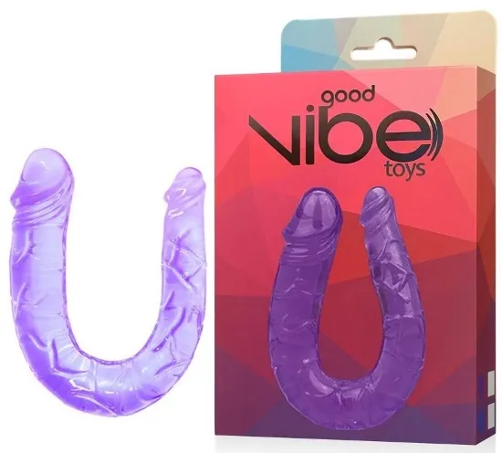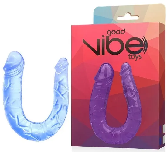 Pênis dupla com veias massageadoras e glande saliente nas duas extremidades.