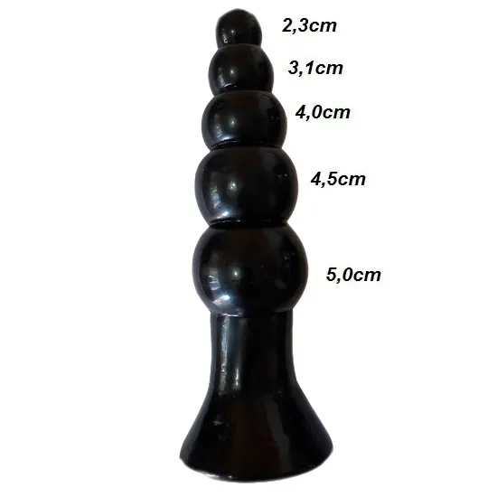 Plug Esferas de 2,3cm até 5,0cm. É bem útil para os iniciantes na estimulação com penetração tanto vaginal como anal, pois aos poucos e sem exageros pode-se acostumar ao brinquedo com sua performance segura e bem exploradora.