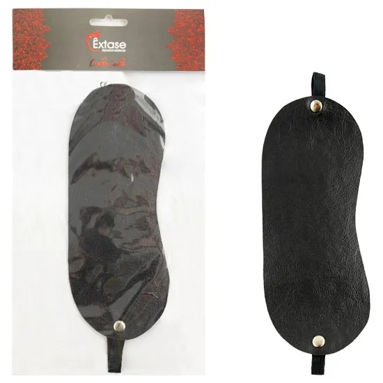 Venda confeccionada artesanalmente em sintético semelhante à couro na cor preta com revestimento aveludado que garante conforto e adaptação perfeita no rosto.